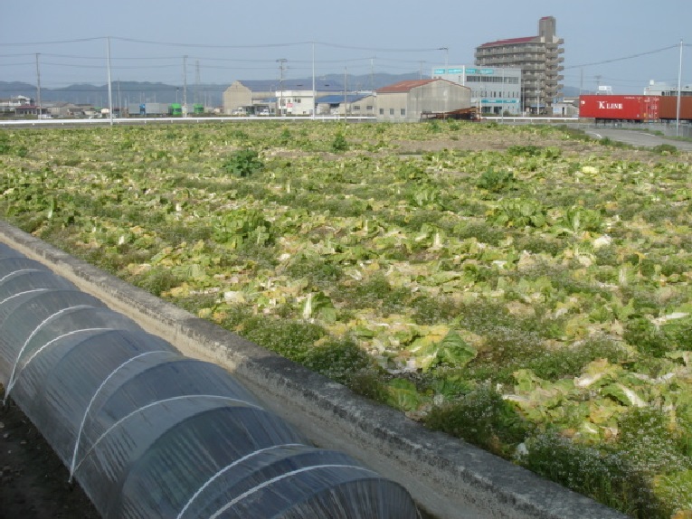 ・9月上旬定植分(収穫手前)。上段写真のはくさいの規格は4L。