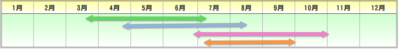 | 播種期 | 定植期 | 収穫期 | 出荷最盛期 |