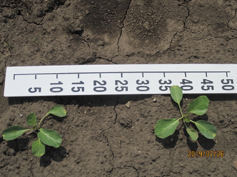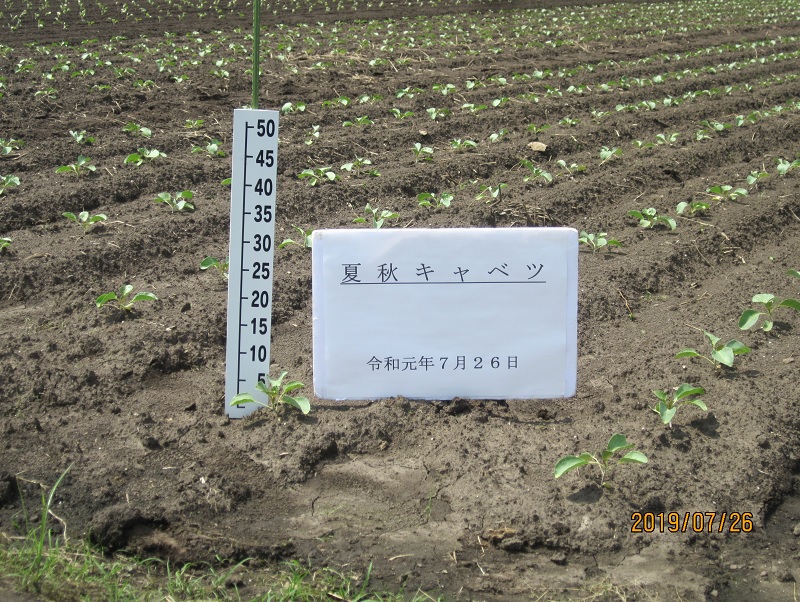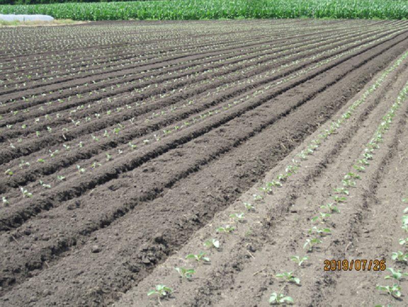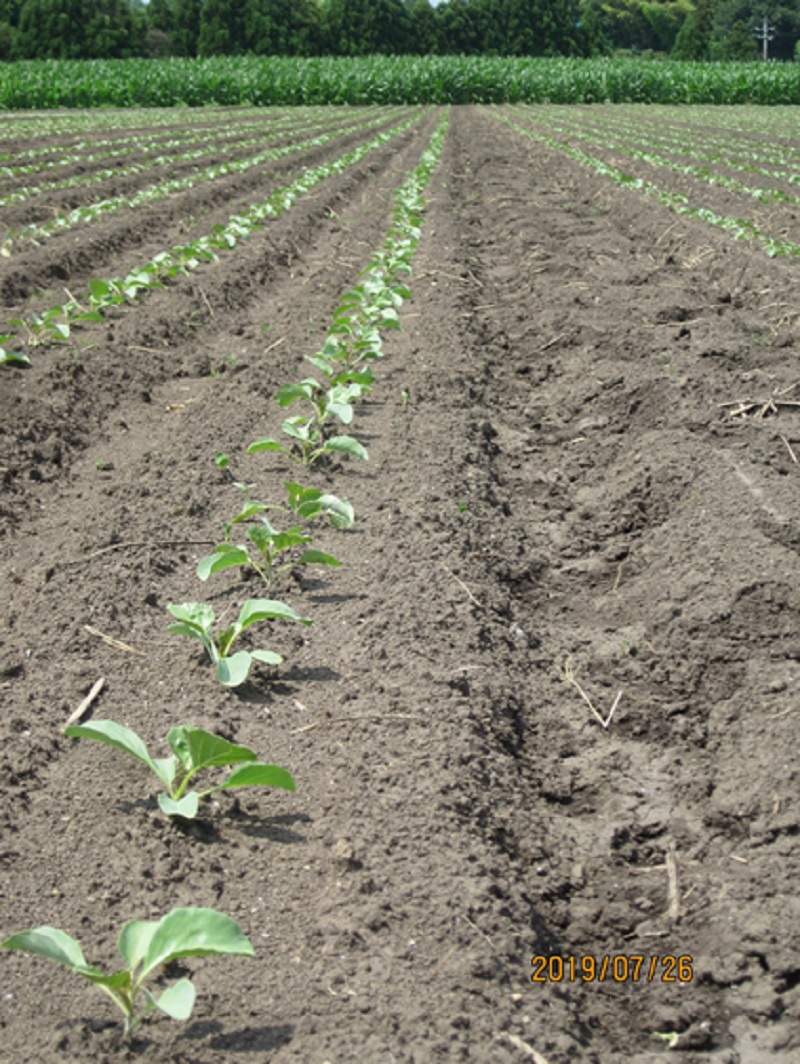 ・面積:50a ・品質:良好 ・病害虫の発生状況:特になし ・出荷時期:9月下旬 《2枚目》 ・定植後9日目の状況。 《3枚目》 ・定植後9日目の株間。 《4枚目》 ・定植後9日目の草丈。 《5枚目》 ・右は定植後9日目と左は定植1日目。 | ||||||