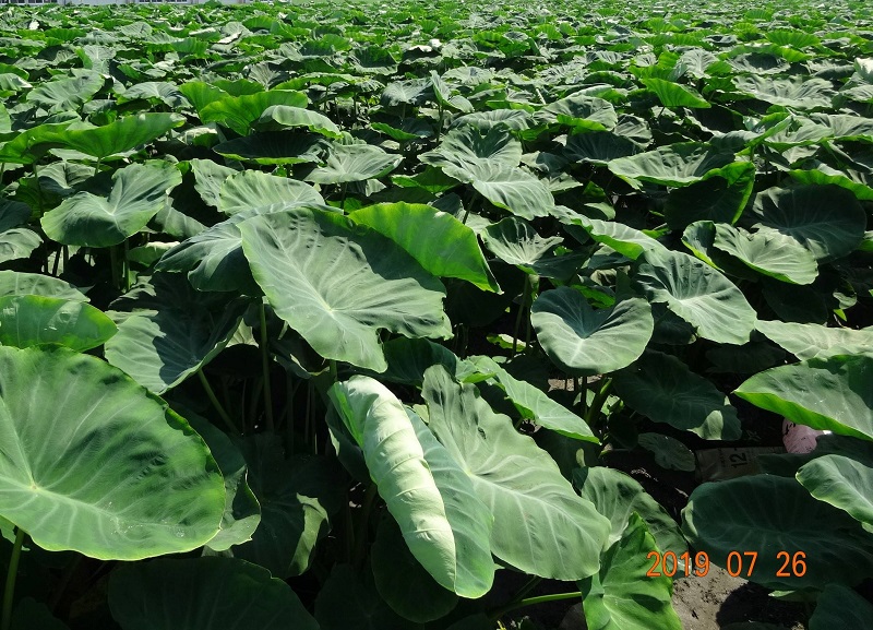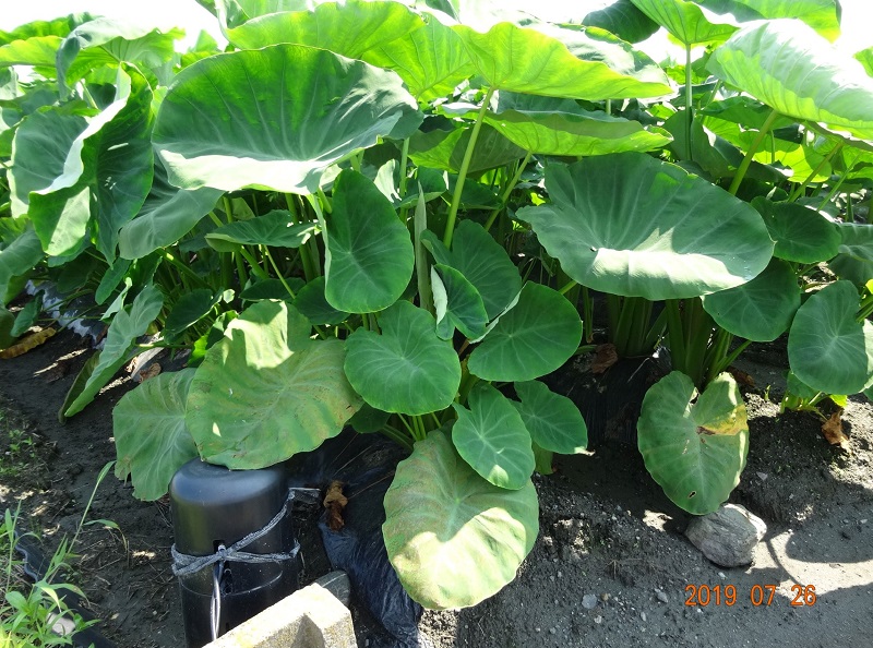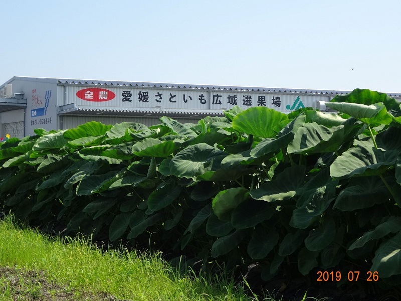 系統商標:「伊予美人」 《1枚目》 ・水田との輪作体系で里芋を作付け。 今年産は85haの見込み。 《2枚目》 ・平成31年3月下旬に定植。 ・全期マルチ栽培。 ・現在の草丈は1m程度で、平年並みで生育している。 ・梅雨明け後、晴天が続くと葉焼けが懸念される。 《3枚目》 ・全農愛媛県本部が設置した「愛媛さといも広域選果場」。 ・選果後「伊予美人」の商標で、関西地区を中心に出荷される。 《4枚目》 ・平成31年3月22日から稼働した。 ・日量35トンの選果能力。 ・東予地区の4JAから集荷し選果する。 | ||||||
