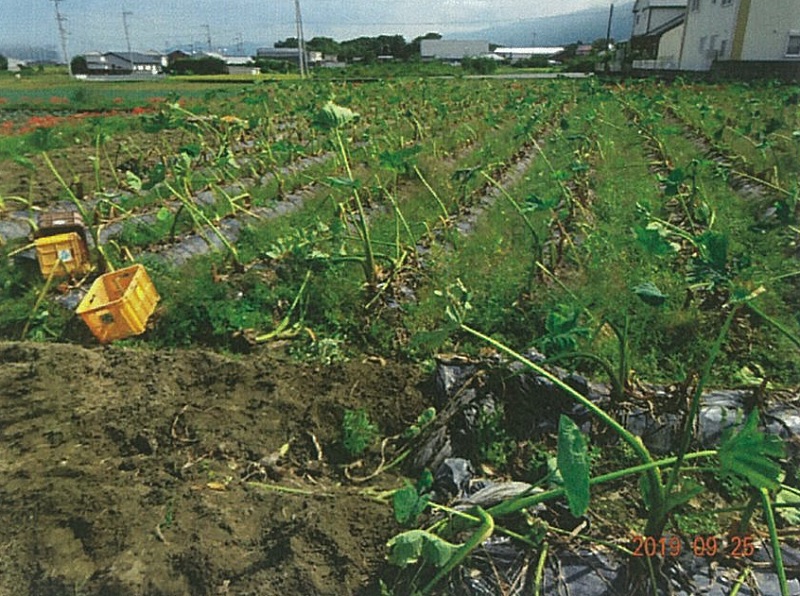 系統商標:「伊予美人」 《1枚目》 ・大きさは平年並みからやや小ぶり。 《2枚目》 ・掘り取りが始まったほ場。 ・平成31年3月下旬に定植。 ・全期マルチ栽培。 ・2度の台風の強風から葉や茎に損傷がみられ、今後の生育が 懸念される。 《3枚目》 ・全農愛媛県本部が設置した「愛媛さといも広域選果場」が本格 始動。 ・9月11日から選果・出荷を開始。 ・日量35トンの選果能力。 ・東予地区の4JAから集荷し選果する。 《4枚目》 ・「伊予美人 」の商標で、県内・関西を中心に出荷される。 | ||||||