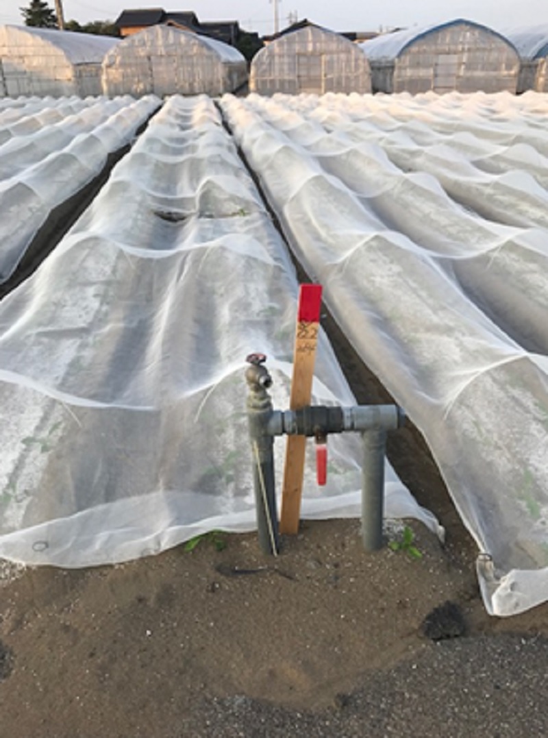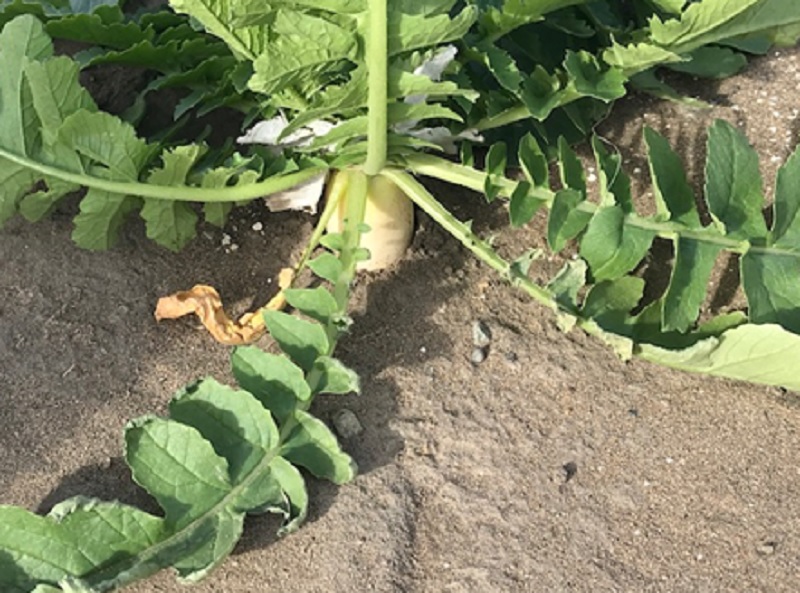 ・品種:夏の守 ・調査当日(9月23日)は台風の接近により強風に煽られてはいる ものの、大きな被害なし。 ・本葉15〜16枚程度。 ・根部の抽出が見られ始めている。 | ||||||