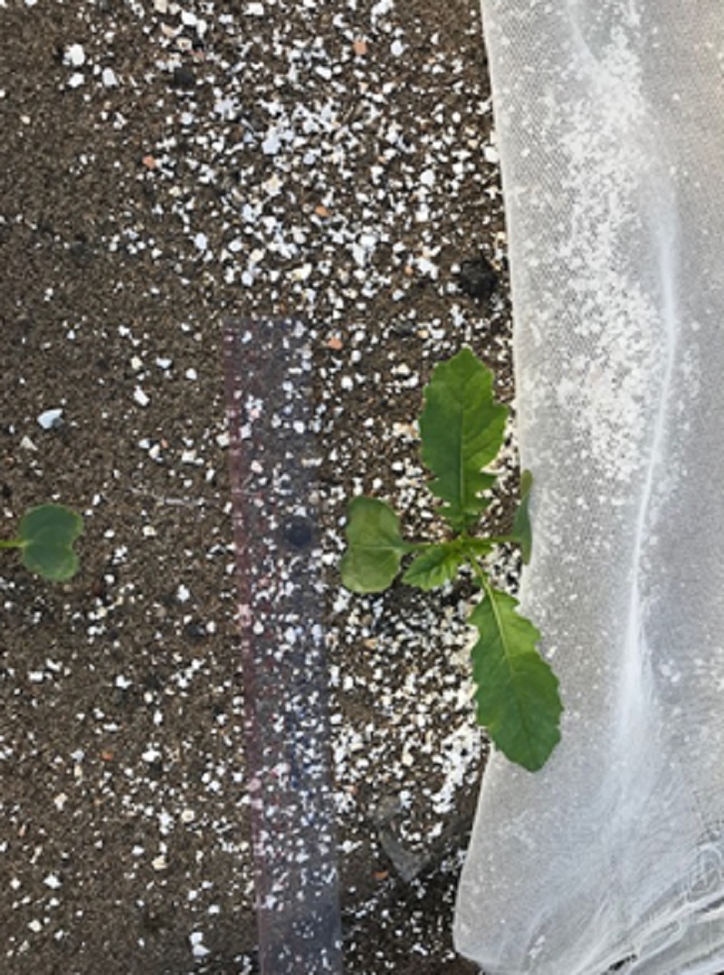 ・品種:夏の守 ・発芽は良好、本葉3枚程度。 ・病害虫の発生は見られない。 | ||||||