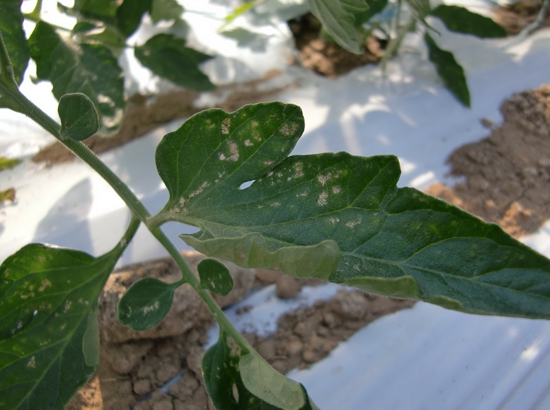 ・1段目、一部色づきはじめている。 《2枚目》 ・6段目が開花している。 《3枚目》 ・一部にアザミウマによる葉の食害が見受けられる。 《4枚目》 ・食害により株ごと抜いた箇所。 | ||||||