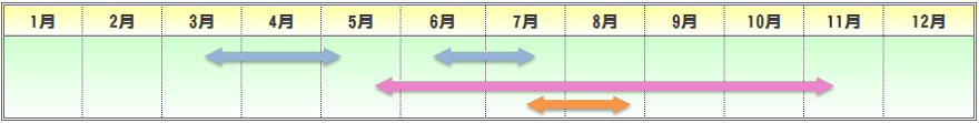 | 播種期 | 定植期 | 収穫期 | 出荷最盛期 |