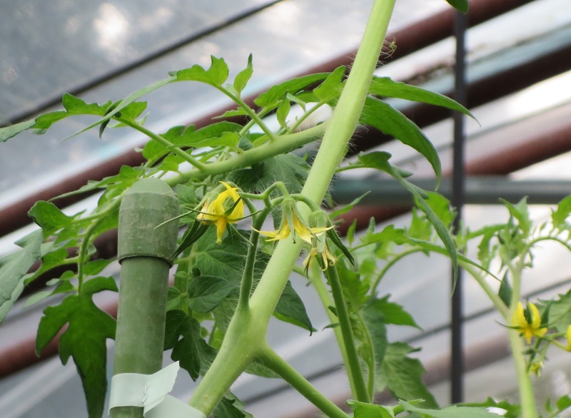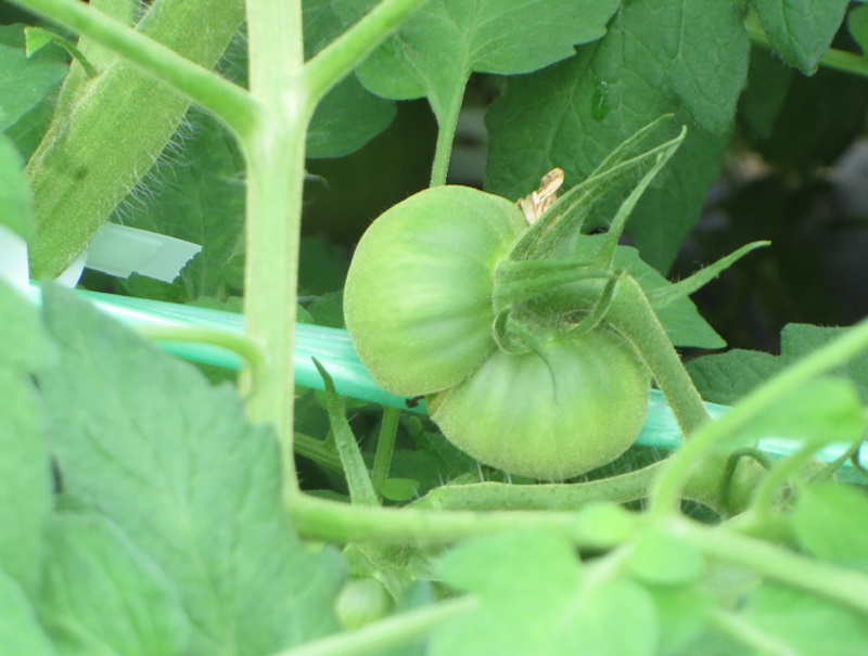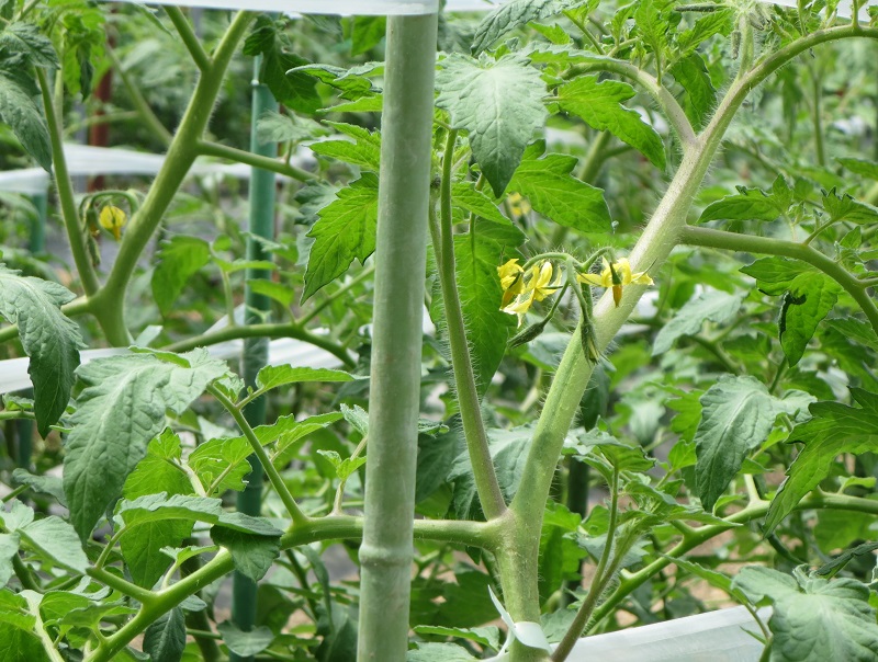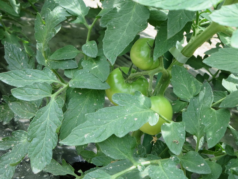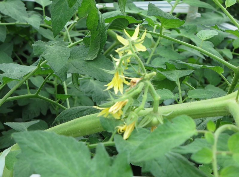 《2、4枚目》 ・品種:ギフト ・5月20日定植 9〜10段目開花、5〜6段目収穫期、7〜8段目 ガク枯れによる花飛び。