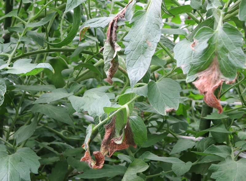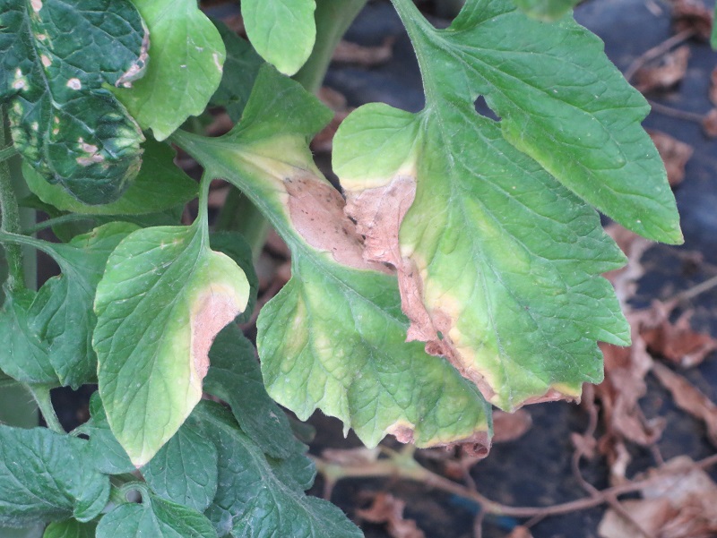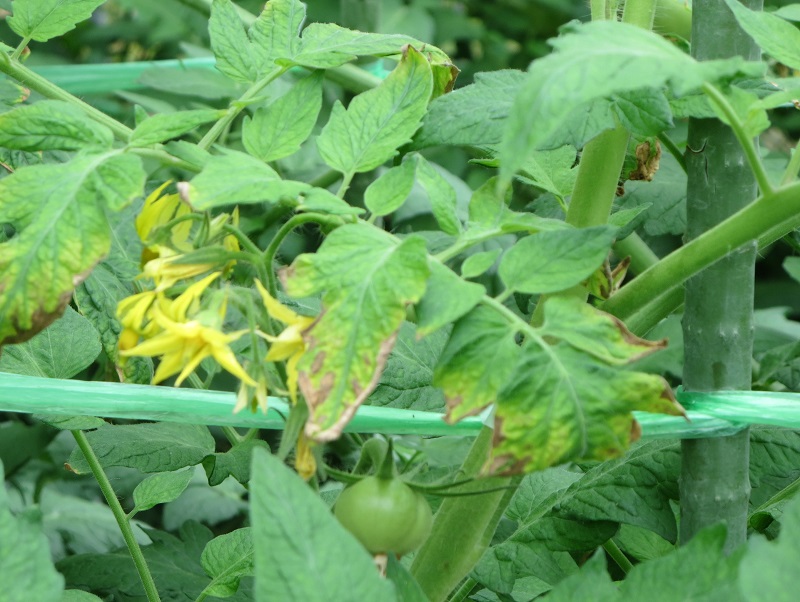 ・7月梅雨時期の日照不足及びその後の猛暑の影響で、根が弱り 葉先枯れ、灰色かび病が発生している。