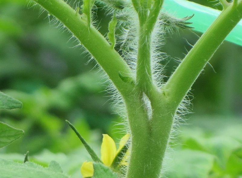 《2、3枚目》 ・JAひだ 標高750m。高山の圃場 定植期 ・令和元年6月17日撮影。 ・品種:桃太郎ギフト ・5月19日定植の圃場 2段目花房開花している。 ・7月下旬出荷開始予定。 ・生育は良好で、病害虫は認められない。