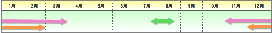| 播種期 | 定植期 | 収穫期 | 出荷最盛期 |