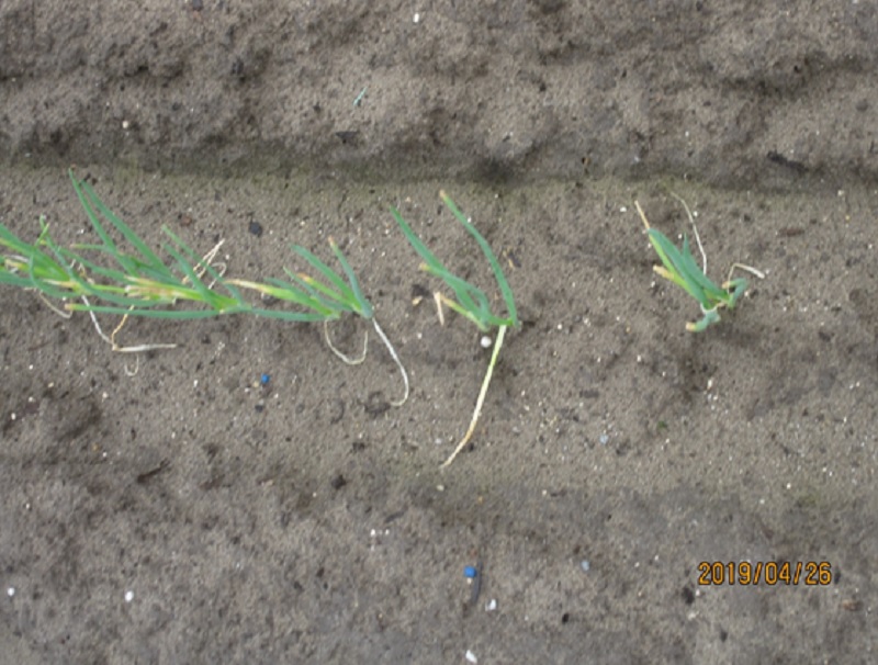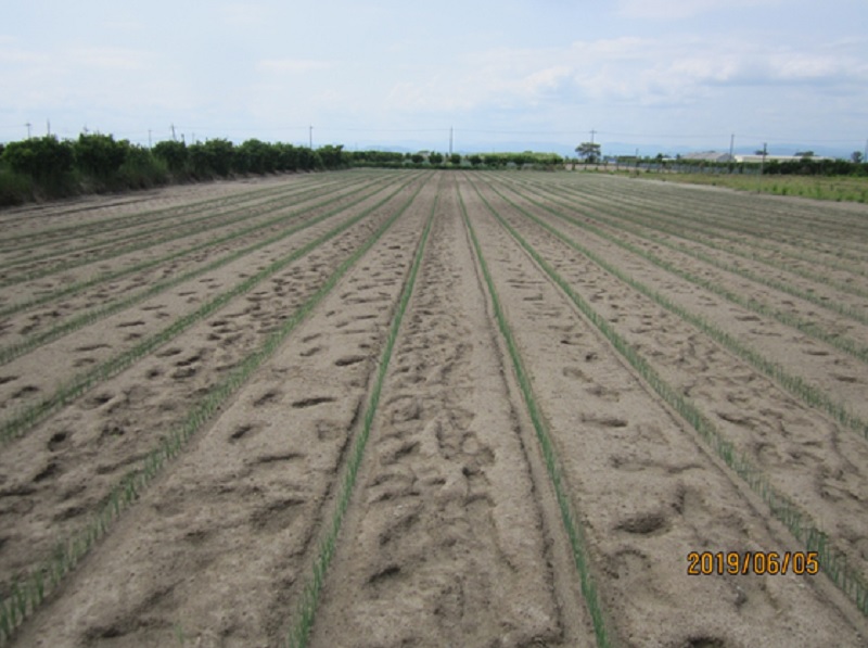 ・収穫前の草丈。 《3枚目》 ・圃場全体の生育状況。 《4枚目》 ・土寄せの状況。 《5枚目》 ・株の状況。 | ||||||