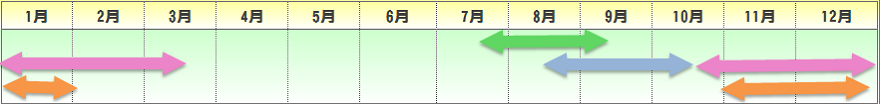 | 播種期 | 定植期 | 収穫期 | 出荷最盛期 |