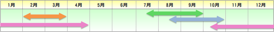 | 播種期 | 定植期 | 収穫期 | 出荷最盛期 |