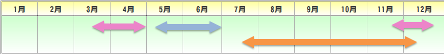 | 播種期 | 定植期 | 収穫期 | 出荷最盛期 |