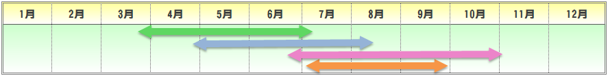| 播種期 | 定植期 | 収穫期 | 出荷最盛期 |
