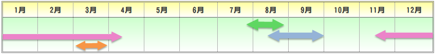 | 播種期 | 定植期 | 収穫期 | 出荷最盛期 |