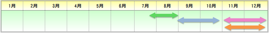 | 播種期 | 定植期 | 収穫期 | 出荷最盛期 |