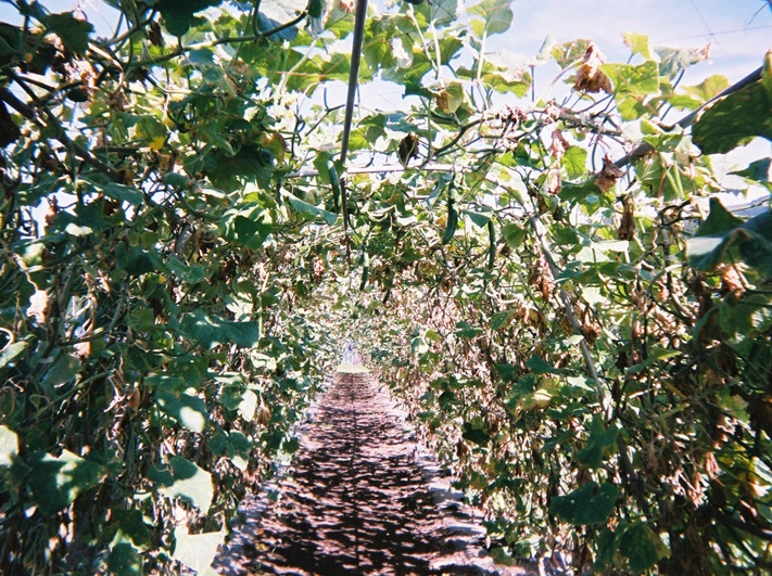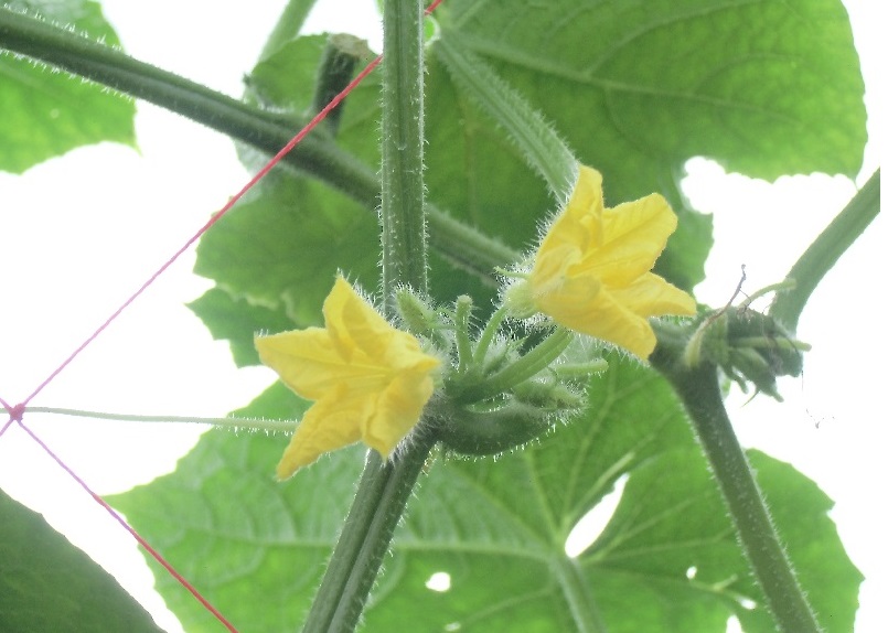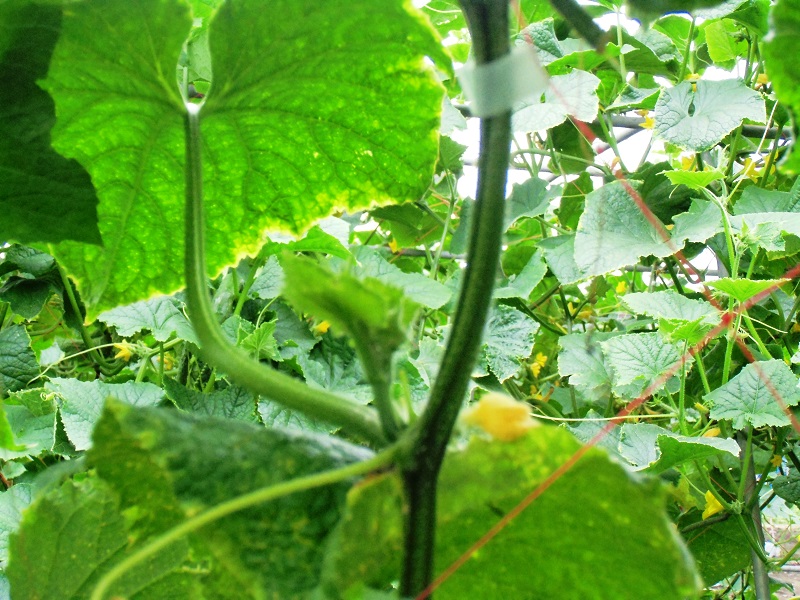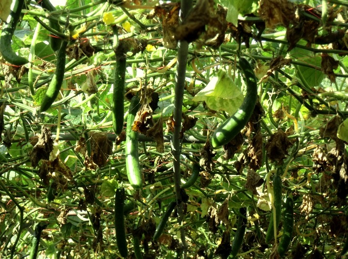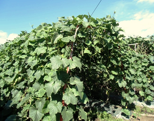 ・日照不足と排水不良により樹勢が弱い状態で着果数が少なく、雄花が多いのが特徴。排水不良により樹勢が乱れ、根痛みにより茎葉の色落ちが目立ち、果形が不揃いである。