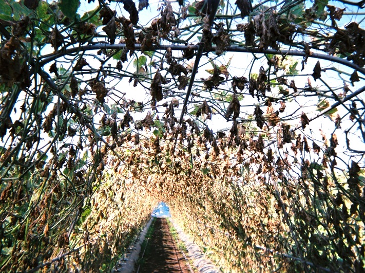 ・まだまだ収穫できそうな園地であるが、稲刈りや果樹の収穫作業と重なり残念な状況である。