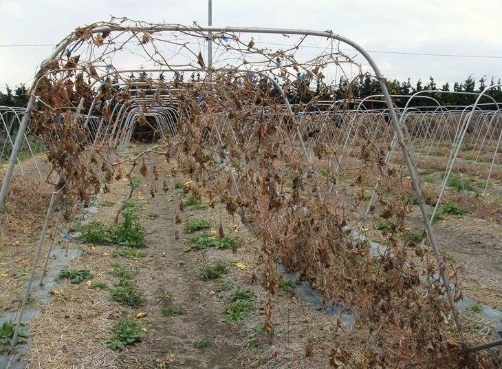・ベト病、うどん粉病が散見され、ホモプシス根腐れ病も場所によっては発生。