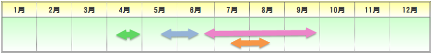 | 播種期 | 定植期 | 収穫期 | 出荷最盛期 |