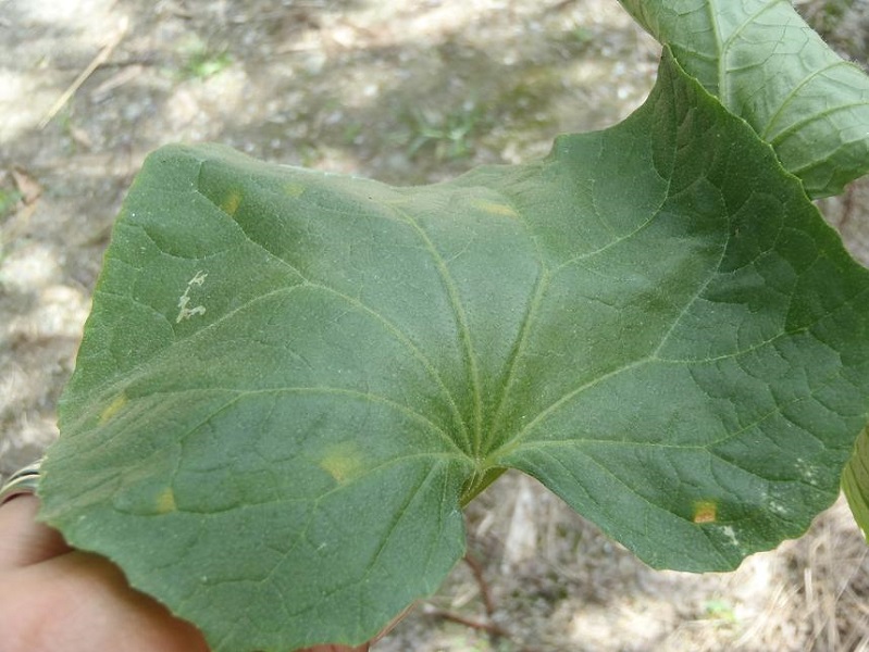 摘果される前のもの。下段はベト病が発生した葉。