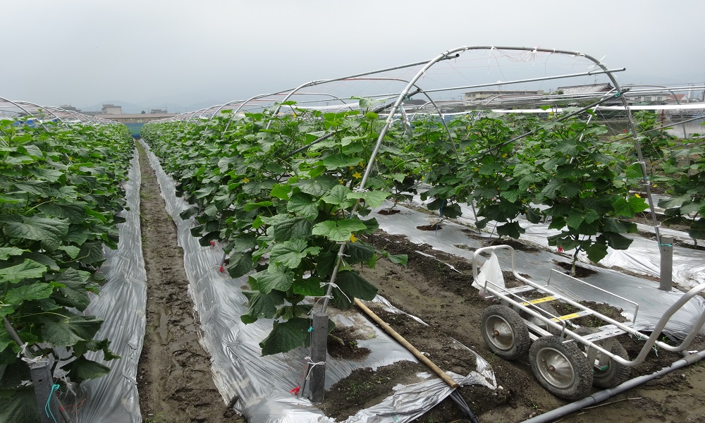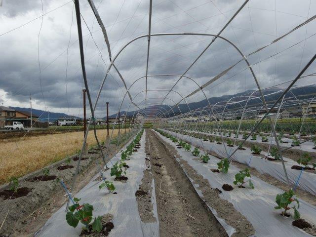 ・1期の作型(5月連休明けから5月下旬定植)は、晴天の日が多く定植作業は順調に行われた。