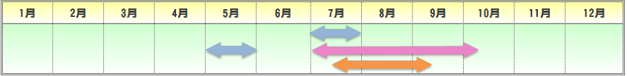 | 播種期 | 定植期 | 収穫期 | 出荷最盛期 |