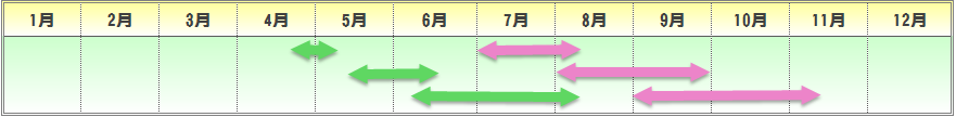| 播種期 | 定植期 | 収穫期 | 出荷最盛期 |