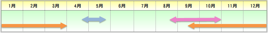 | 播種期 | 定植期 | 収穫期 | 出荷最盛期 |