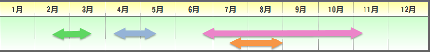 | 播種期 | 定植期 | 収穫期 | 出荷最盛期 |