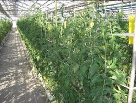 ・8月5日定植(購入苗:CFハウス桃太郎) ・生育は概ね順調であり、病害虫の発生はない。天窓を開け湿度管理徹底に努めている。 ・6月まで27〜29段の長期採り。 | ||||||