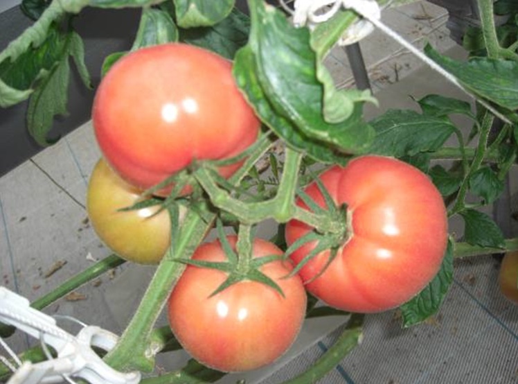 ・8月15日定植(購入苗:CFはるか、台木:スパイク) ・生育は順調であるが少し樹が疲れているか。病害虫の発生は特に無い。 温度(10〜14℃に設定を若干さげたが)湿度等管理徹底に努めている。 ・現状8〜9段中心の収穫、格段3〜4個に適果、14段まで交配させている。 ・6月までの長期採り 。 上から 1枚目:樹勢が少し弱いか。 2枚目:8段。 3枚目:14段。 4枚目:9段(玉径:8cm程、形状良好) | ||||||