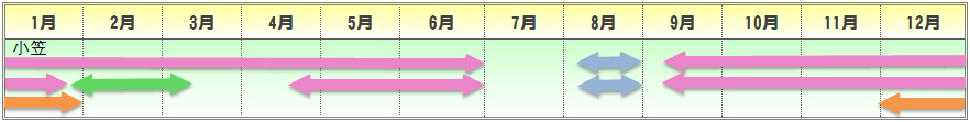 | 播種期 | 定植期 | 収穫期 | 出荷最盛期 |