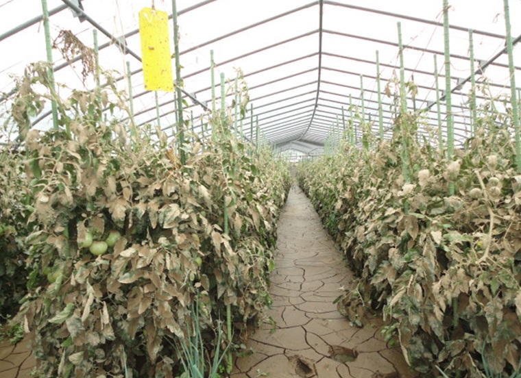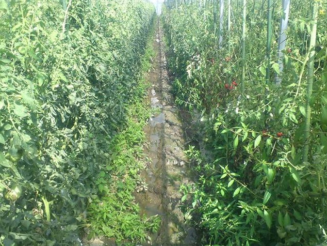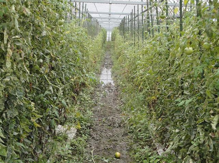 上段:7月28日の豪雨により、ハウス内が冠水した。