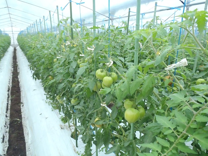 ・8月20日から定植が始まり、10月上旬まで続く。 ・8月下〜9月上旬の台風・大雨の影響で1段果房着果悪い。 (平均2玉着果) 通常4玉 1枚目:8月20日定植圃場。 2枚目:同上。1段果房、2〜3玉。 3枚目:8月25日定植圃場。 4枚目:同上。1段開花。 | ||||||