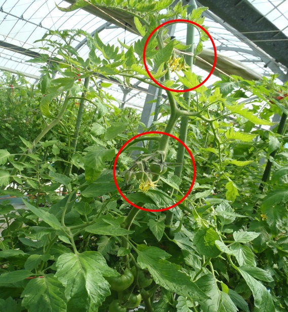 ・当初、低段(1〜2段)の着果不良から4段以上は良好。