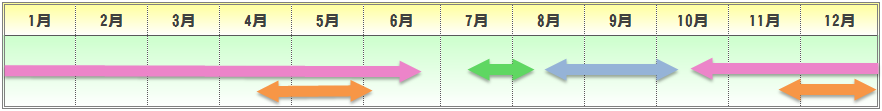 | 播種期 | 定植期 | 収穫期 | 出荷最盛期 |