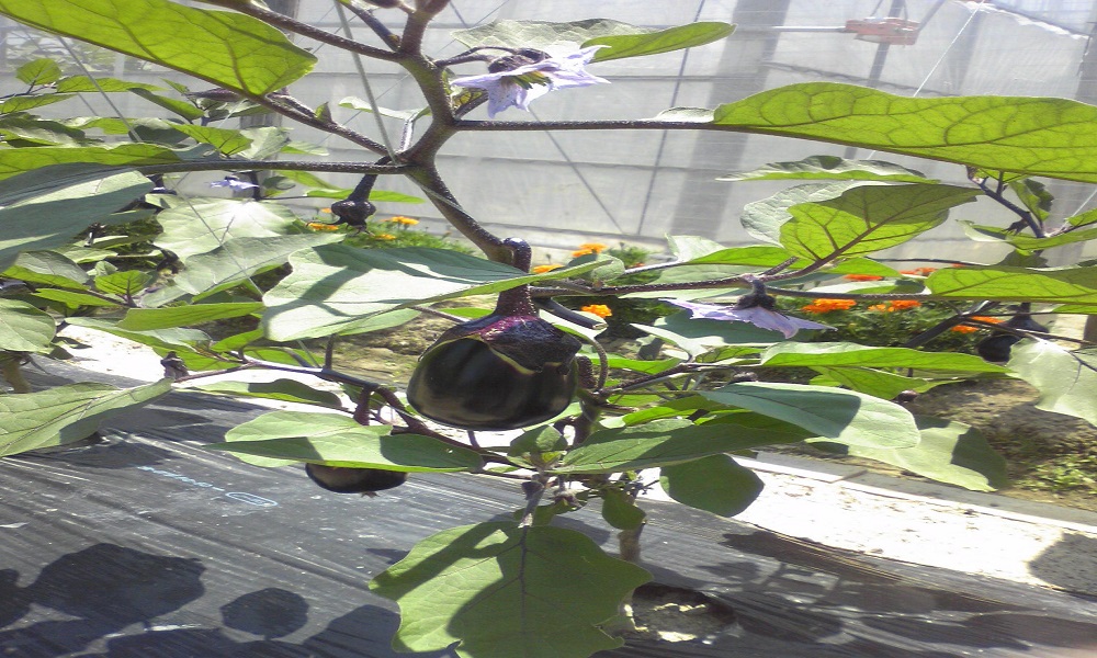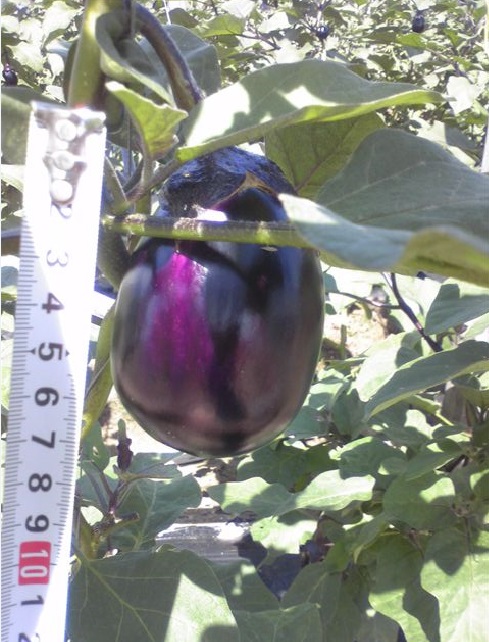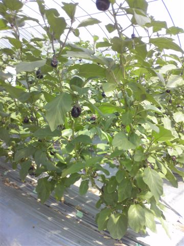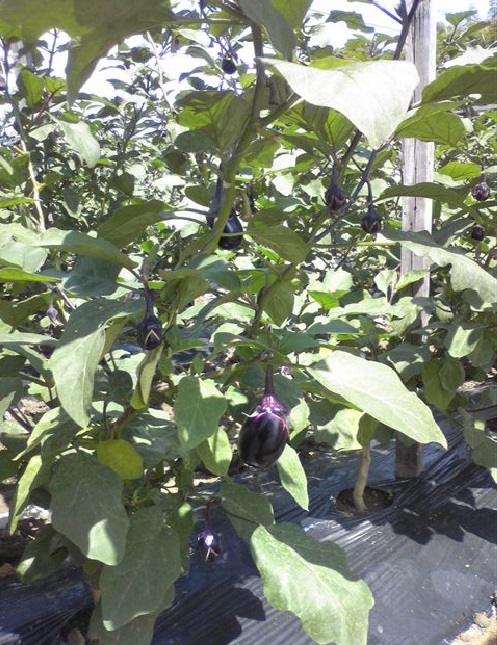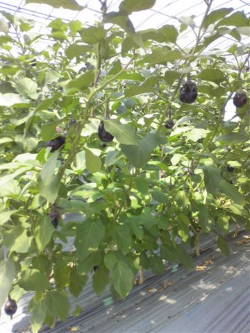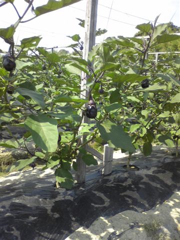 ・写真は水ナスである。10センチに満たないものも多いが、出荷時は15センチくらいまで成長する。