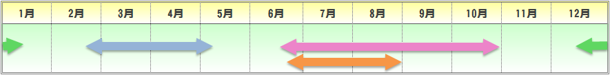 | 播種期 | 定植期 | 収穫期 | 出荷最盛期 |