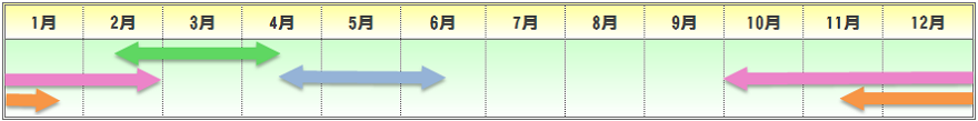 | 播種期 | 定植期 | 収穫期 | 出荷最盛期 |