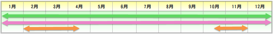 | 播種期 | 定植期 | 収穫期 | 出荷最盛期 |