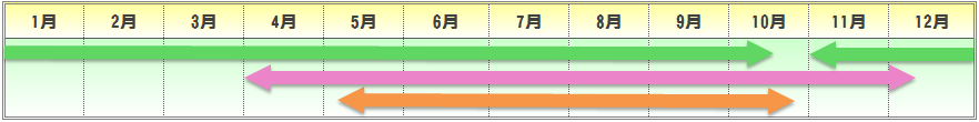 | 播種期 | 定植期 | 収穫期 | 出荷最盛期 |