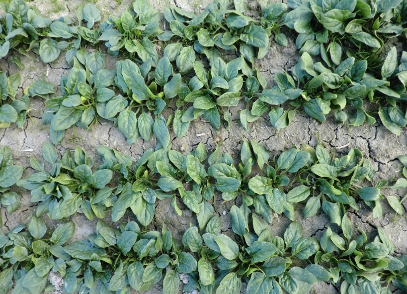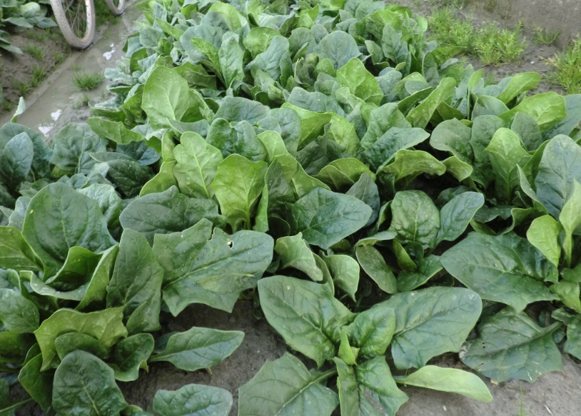 ・本圃場は面積が8畝となっている。9月25日に播種(品種はクローネ)を行い、11月10日前後の出荷を予定している。病害虫の発生は特に見られない。