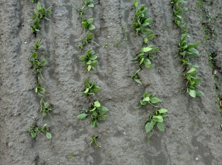 ・本圃場は面積が8畝となっている。9月25日に播種(品種はクローネ)を行った。