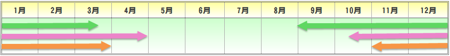| 播種期 | 定植期 | 収穫期 | 出荷最盛期 |