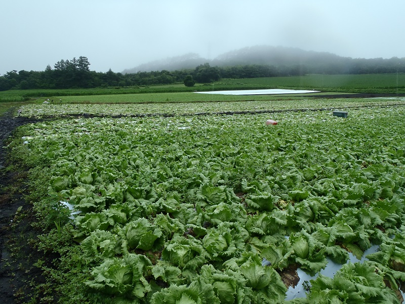 ・7月に出荷を予定していたうち200tほどが雹害を受け、出荷不能に。出荷不可能となった圃場はおおよそ10町歩、200トンほどと予想される。生育中のレタスへの雹害もあり、7月後半以降の出荷量への影響も懸念される。