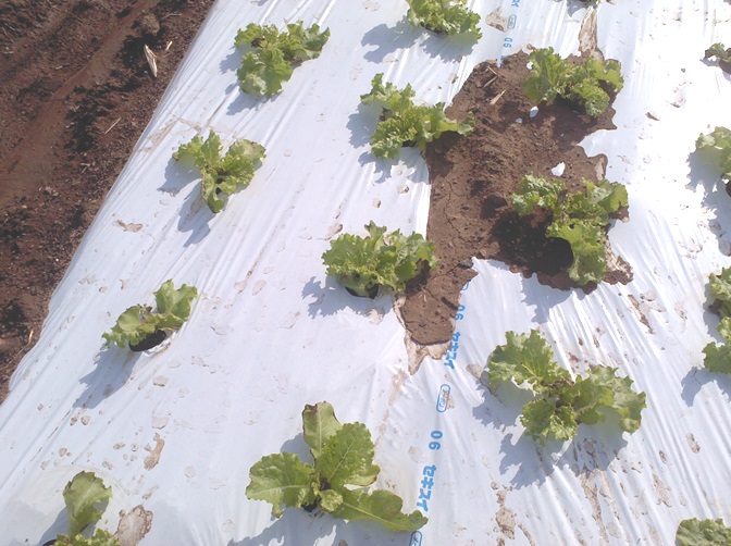 当地区は1ベット4条植え(株間30cm、条間27cm)が主流であり、全面マルチ栽培は少ない。