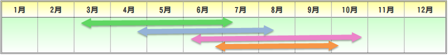 | 播種期 | 定植期 | 収穫期 | 出荷最盛期 |