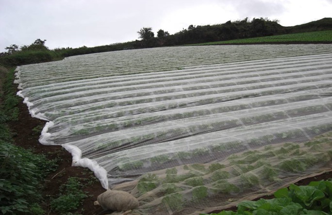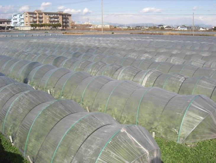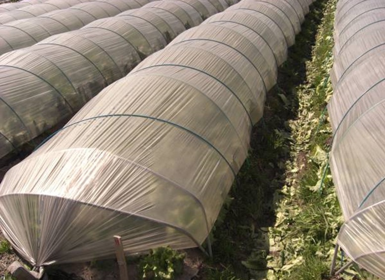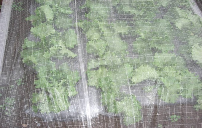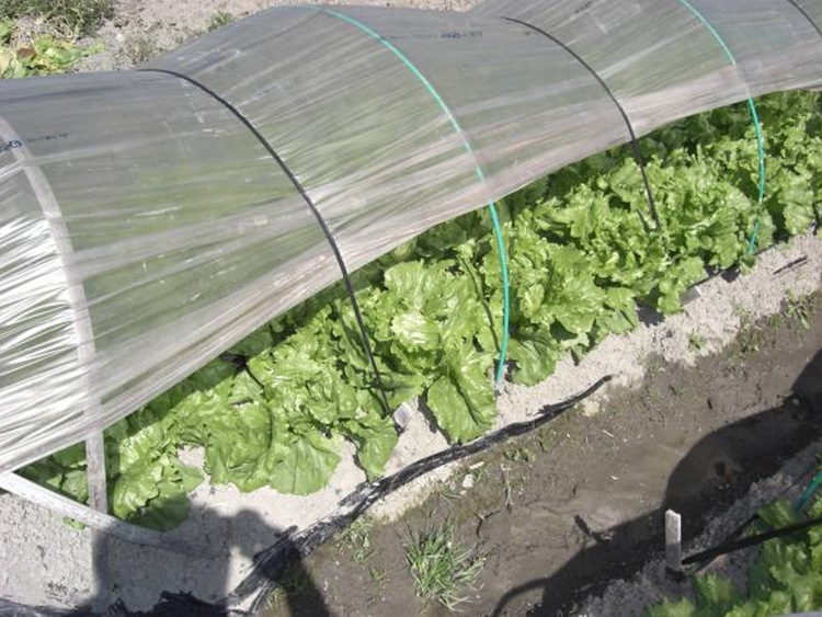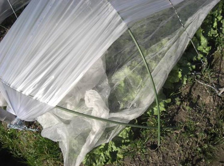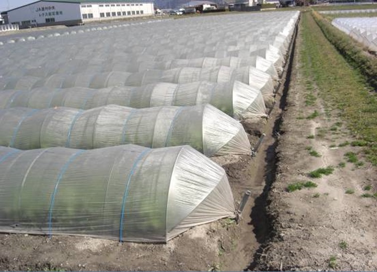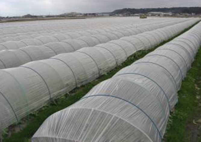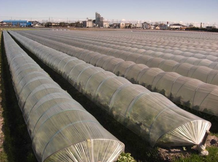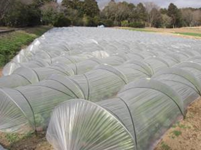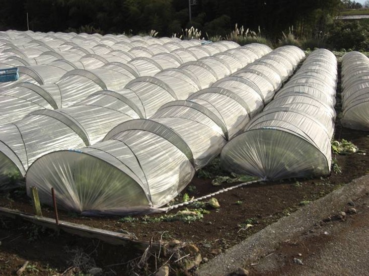10月中旬定植。台風対策でタフベルをベタ掛けした。