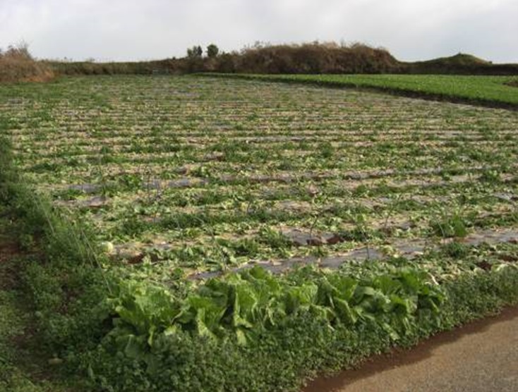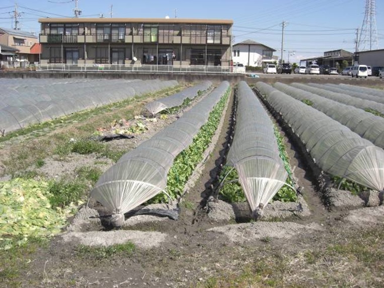 総じて、この管内では途切れることなく定植が行われた。 ・写真1.2枚目 撮影場所:JA遠州中央園田集荷場近く 定植:10月23日 径は15cm程と生育順調であり、1月9日頃から収穫予定している。 ・ 写真3.4枚目 定植は10月上旬のものであるが病害虫もなく順調な生育をしており、12月中旬からの出荷が見込まれる。 | ||||||